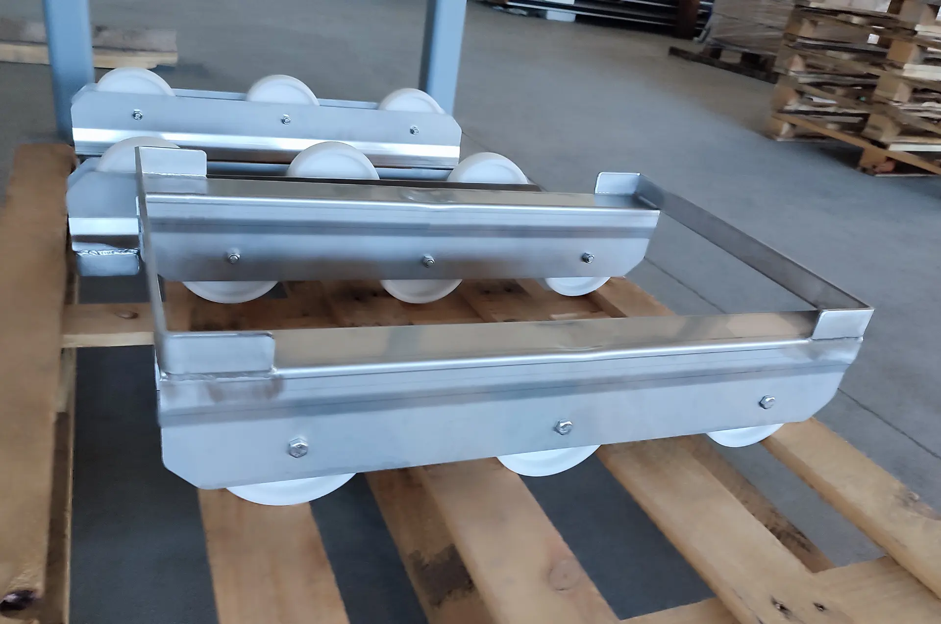 Stainless steel transport trolleys are the perfect solution for moving products, raw materials, and containers in production halls, warehouses, and cold rooms. We also manufacture specialized Euro box trolleys that streamline daily logistics and maintain order in the workplace.